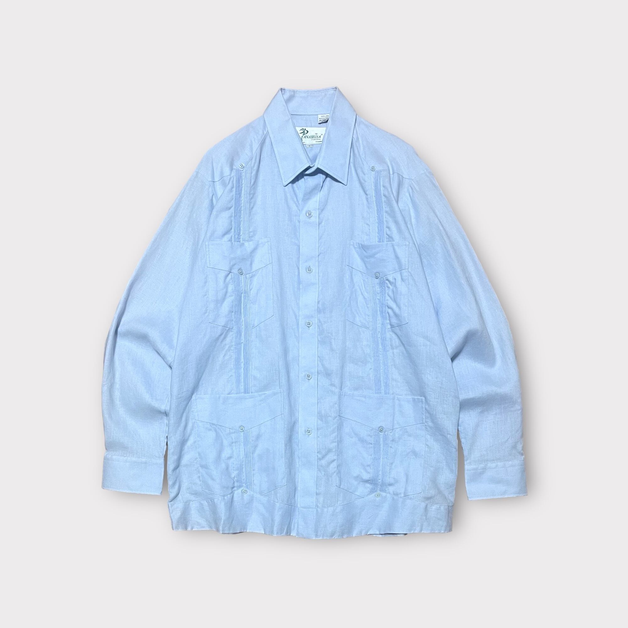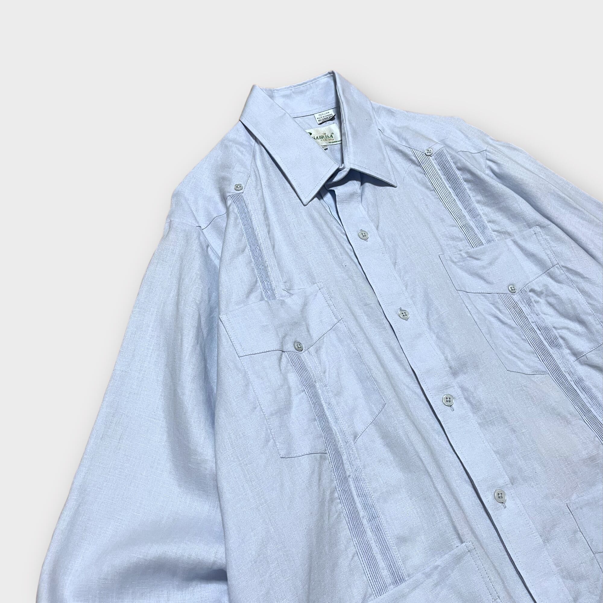 【Vintage】1990's ロングスリーブリネンキューバシャツ MADE IN PANAMA