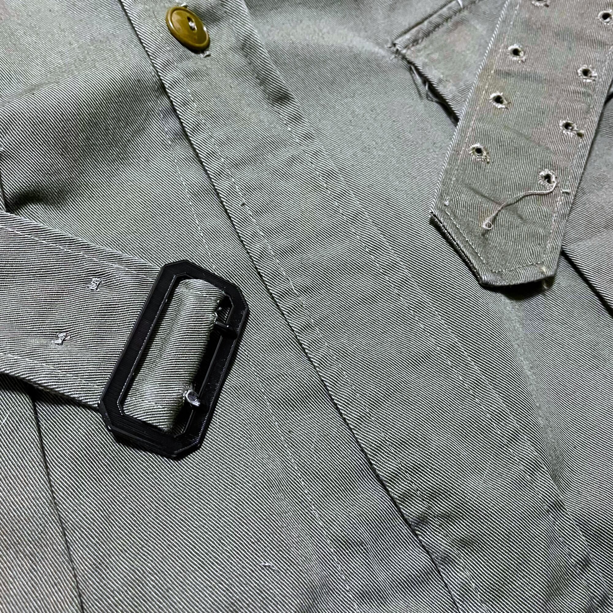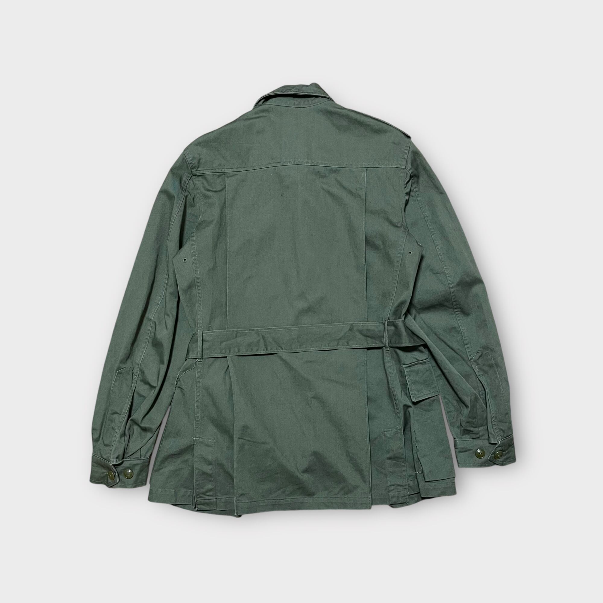 サファリジャケットの形でミリタリーのオリーブカラーのアイテムは大変貴重でお探しの方も多いアイテムではないでしょうか