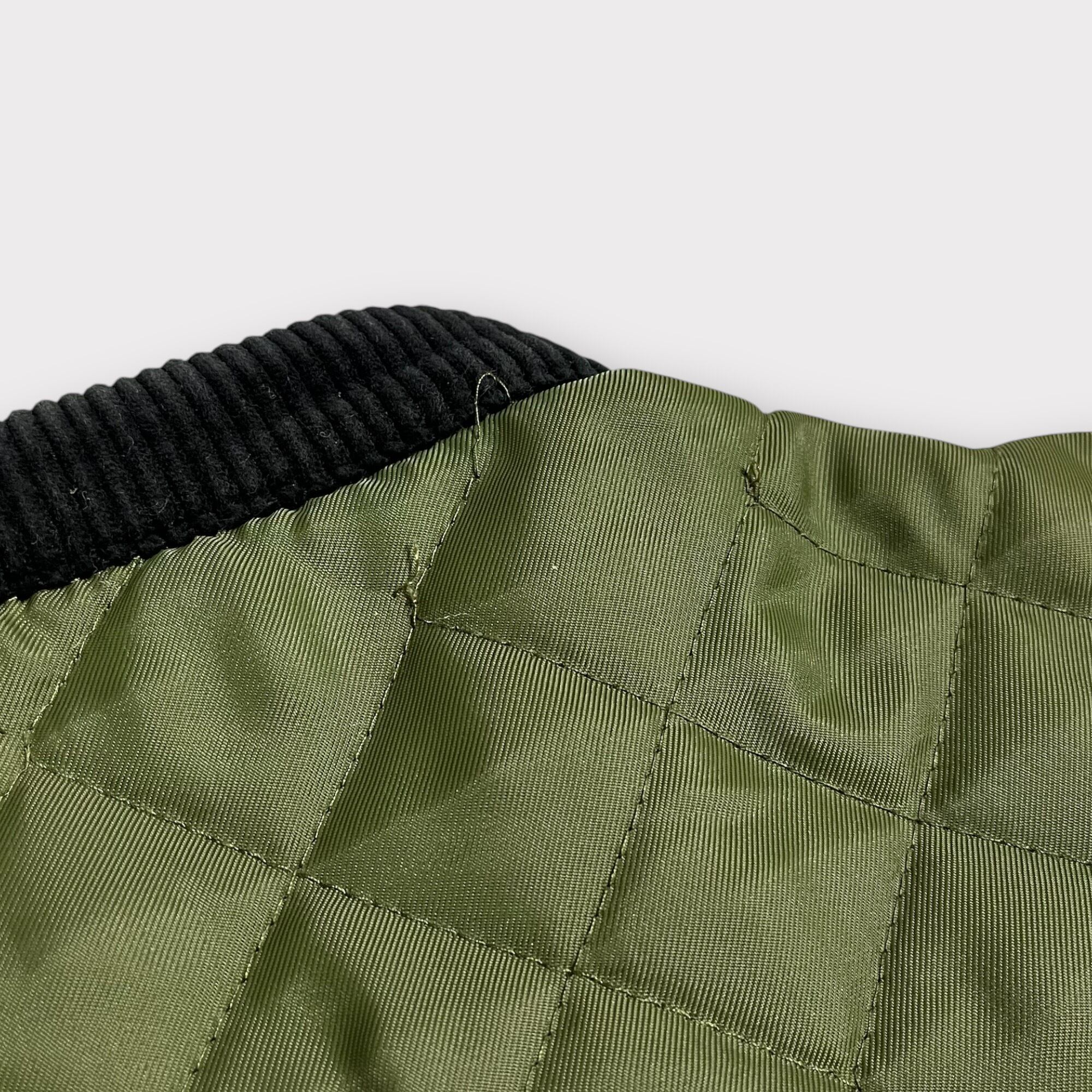 あまり見かけないオリーブカラーにブラックのコーデュロイの組み合わせがとても良い雰囲気です!