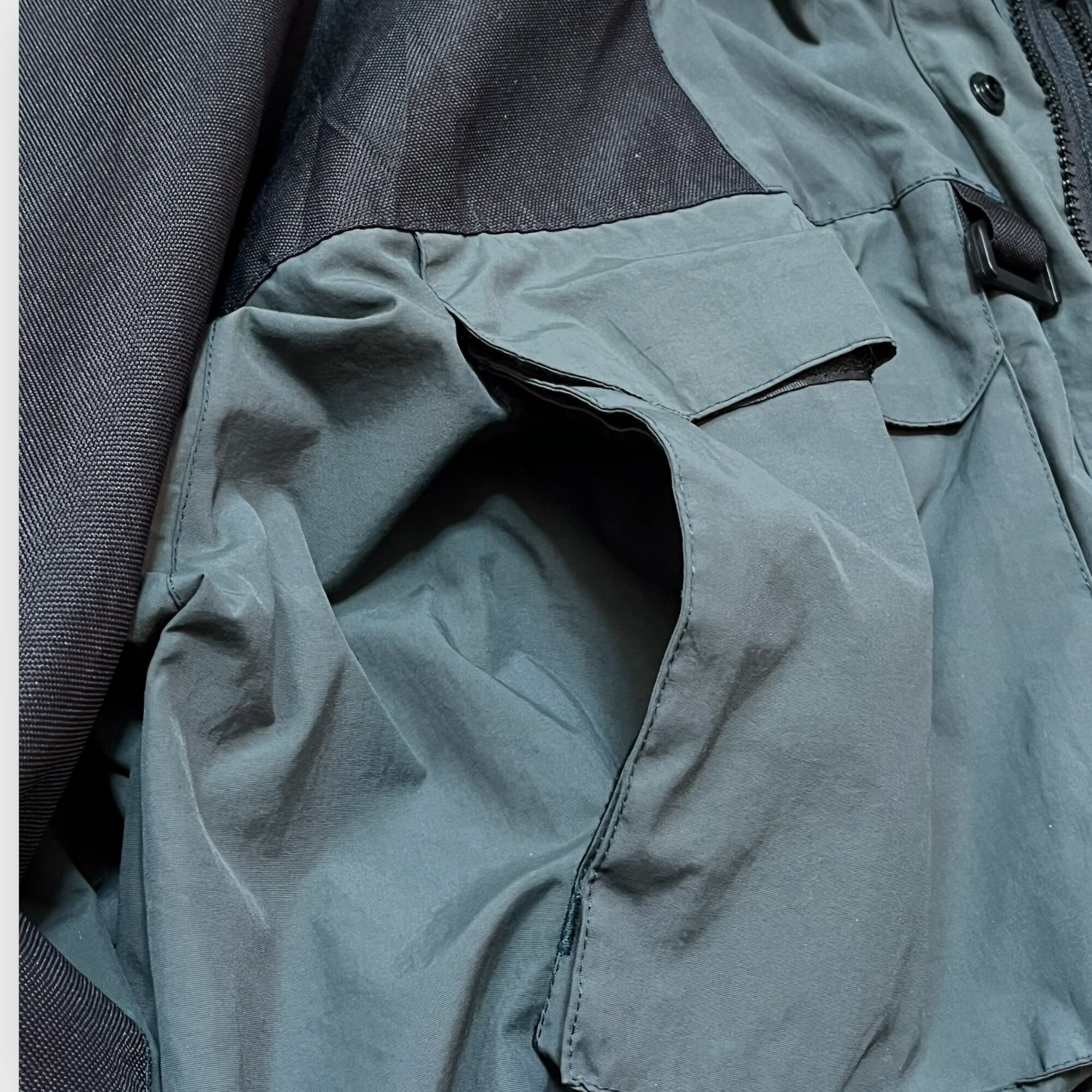 フロントの大きなマチ付きのポケットやベルクロ、背面にもポケットの付くギミック感を感じるディテールもとても魅力です。