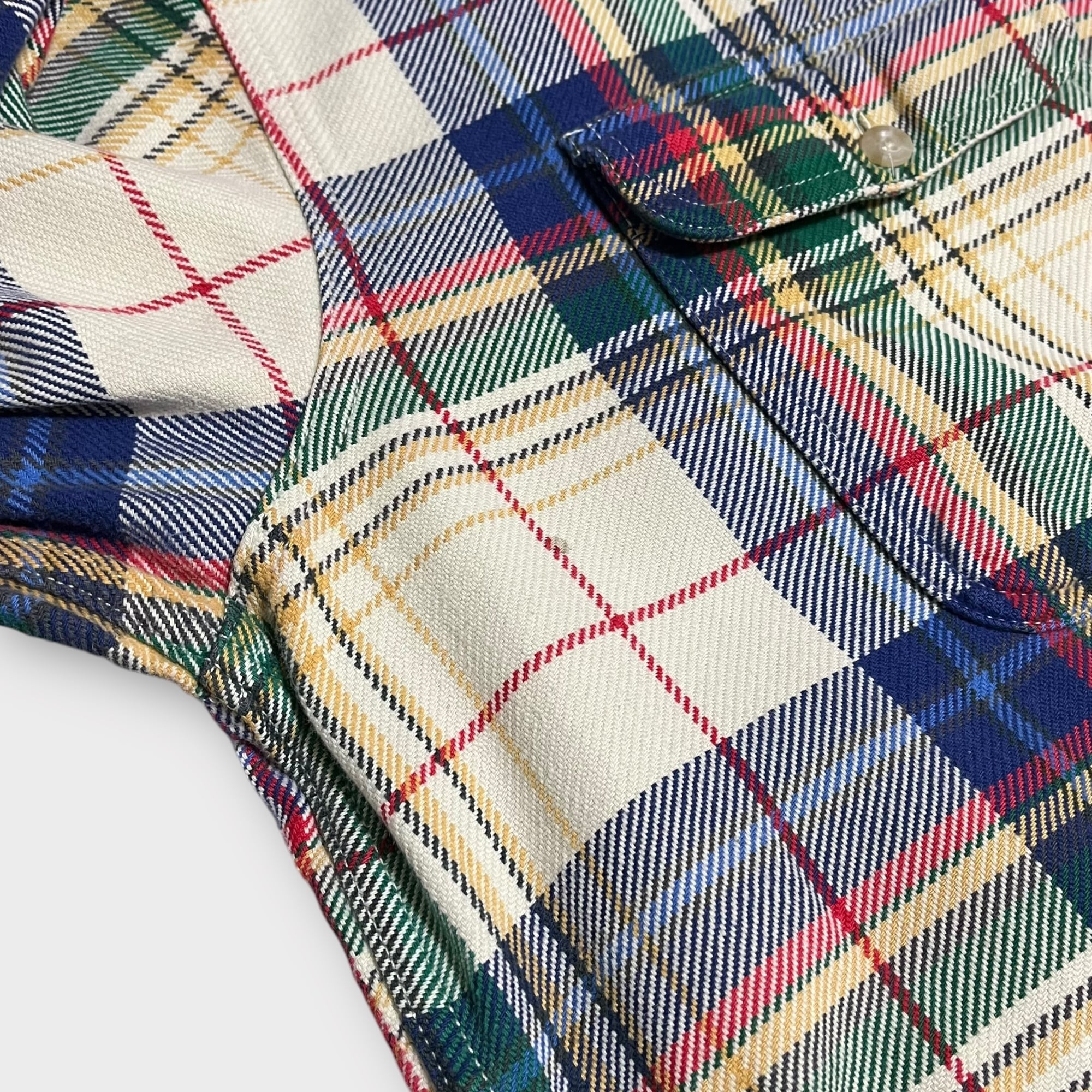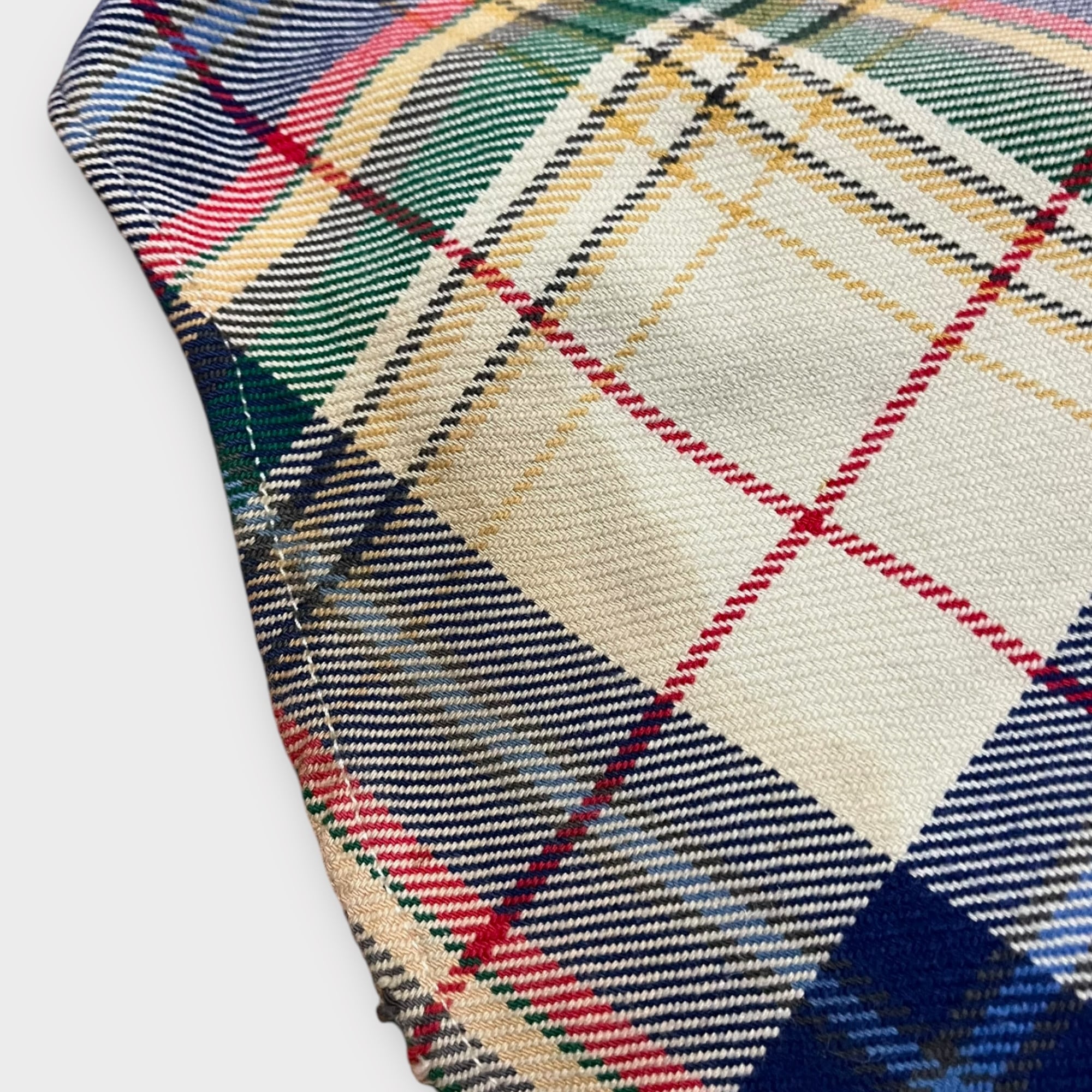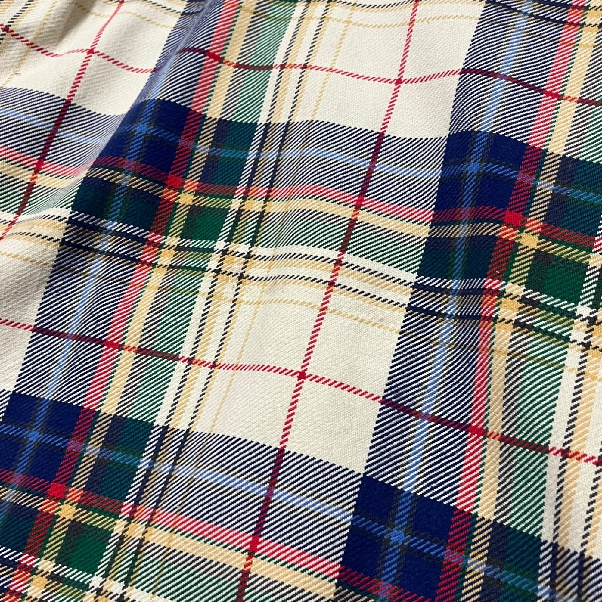 アイボリー系のベースにカラフルなタータンチェックが魅力的な柄です。