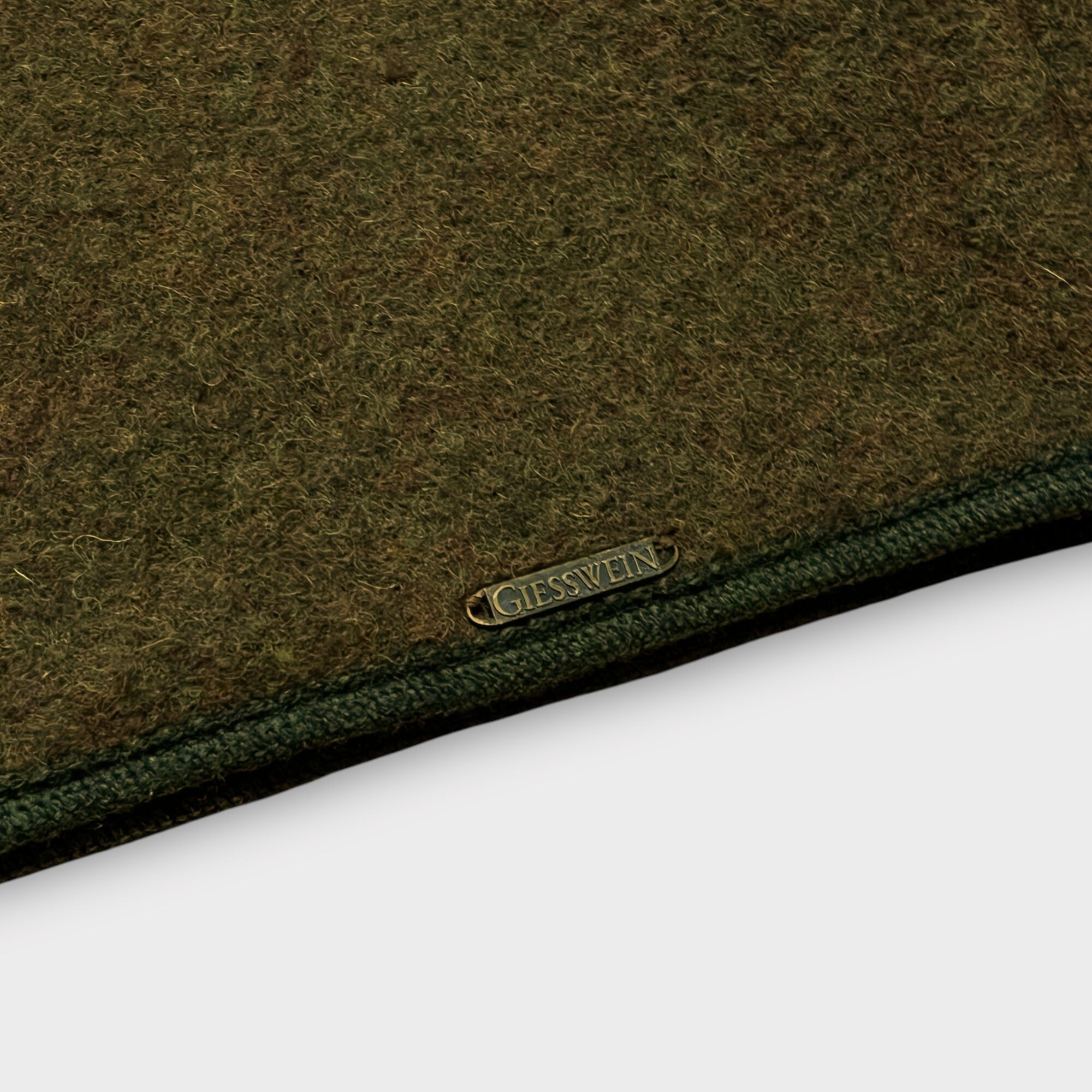 ミックスカラーのブラウンっぽいオリーブ系のカラーにダークグリーンのパイピングの良い配色!