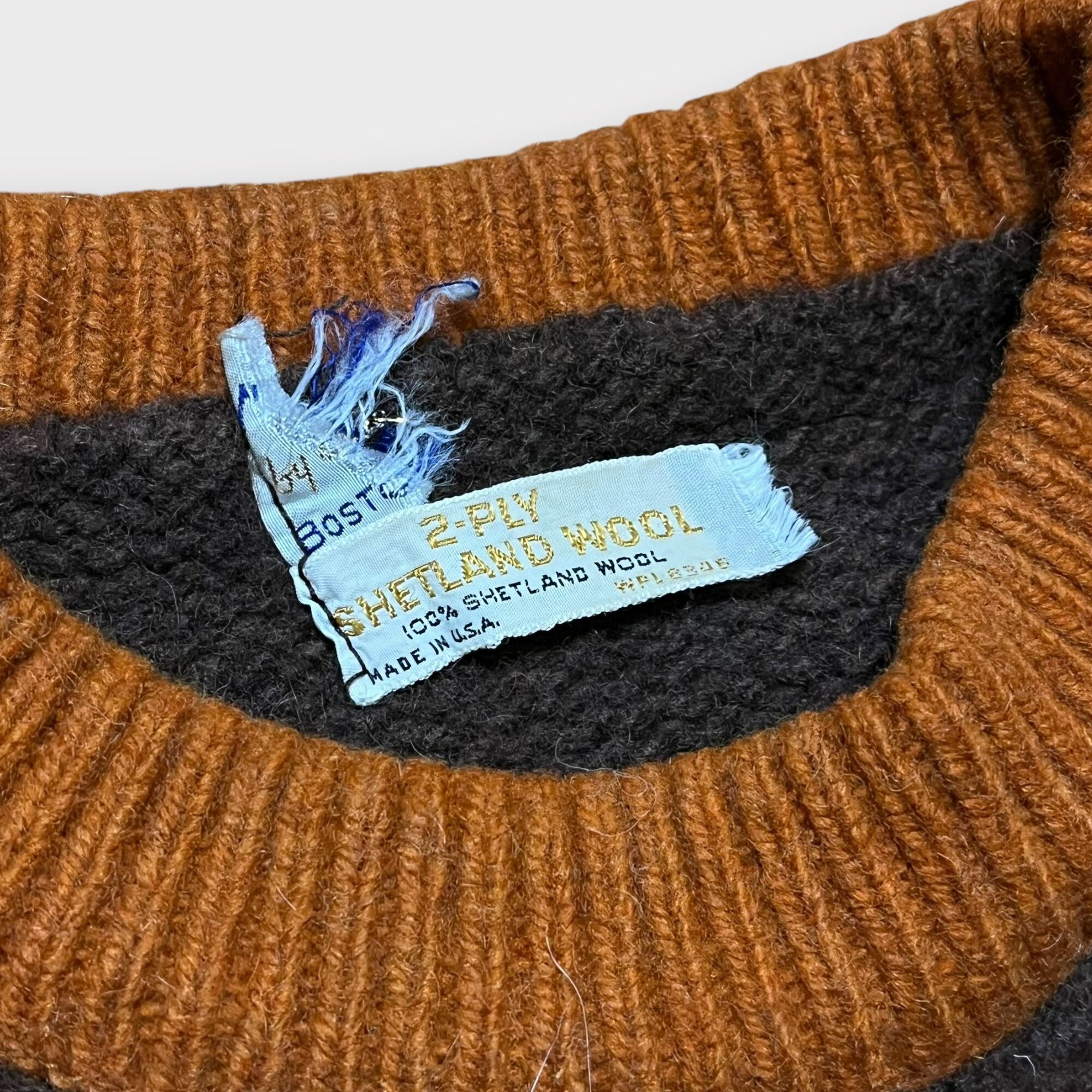 【Vintage】1970's~ ツートンカラーシェットランドウールセーター MADE IN USA