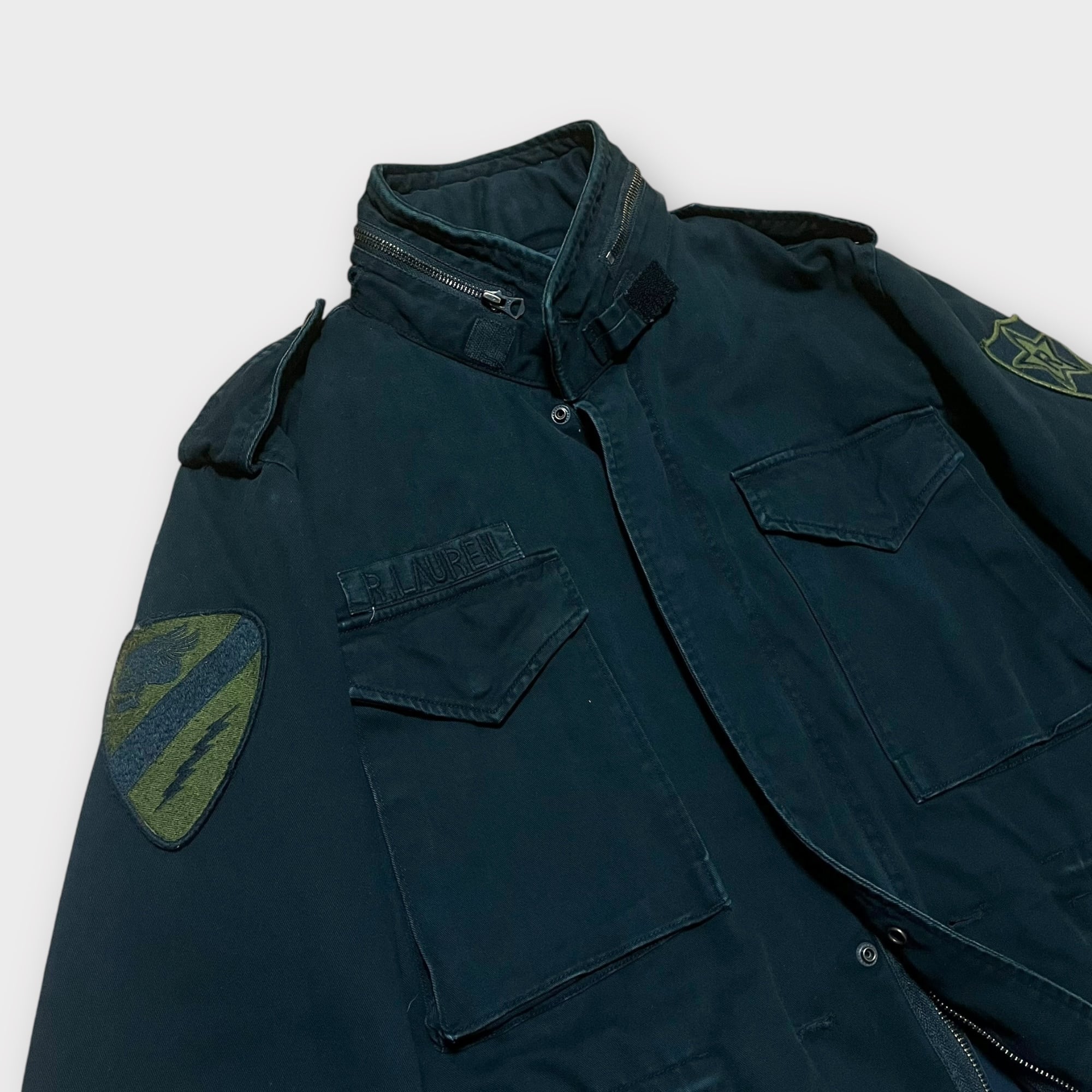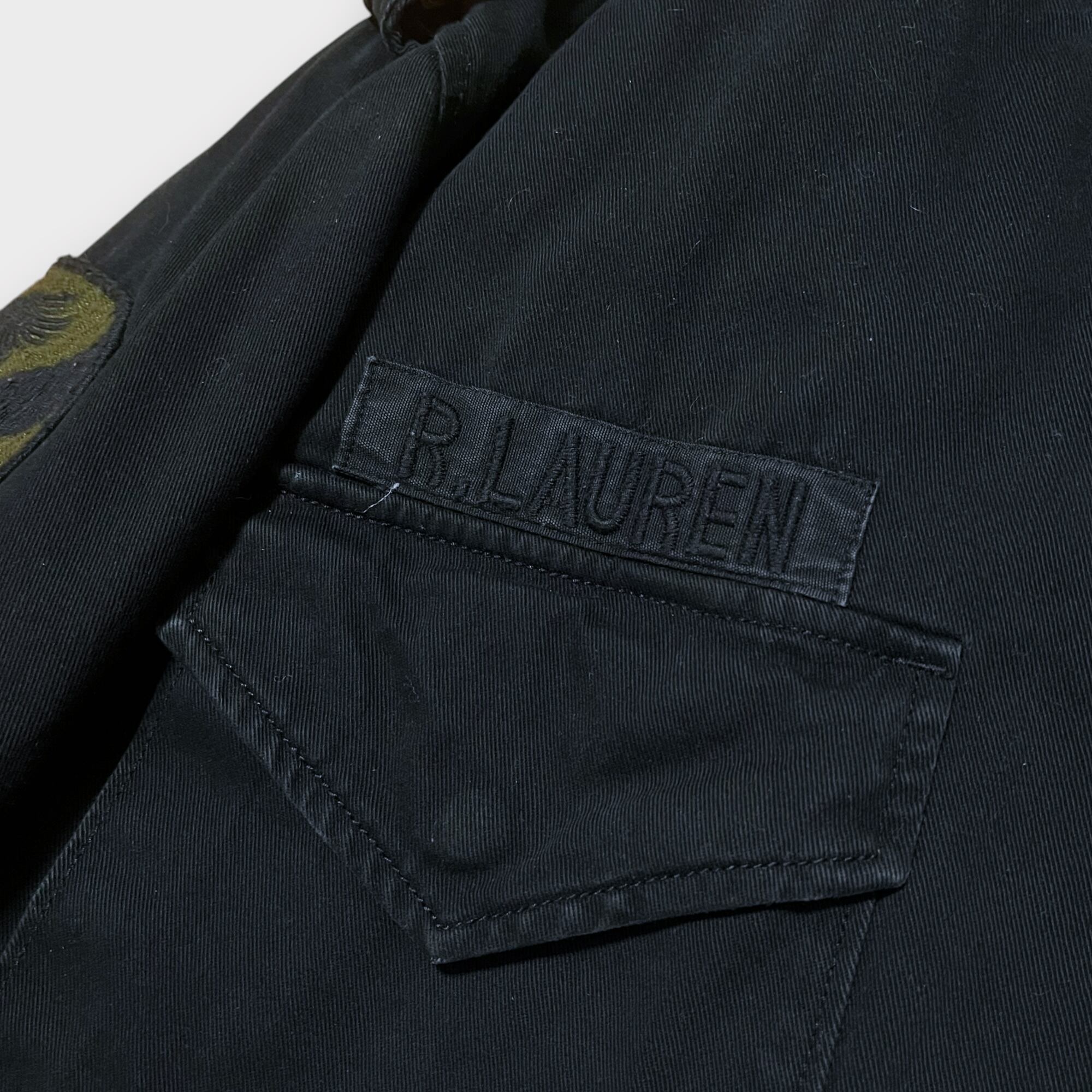 ミリタリーのM-65フィールドジャケットの形をブラックカラーで作りミリタリー調のラルフローレンのワッペンが取り付けられたデザインはまさにラルフローレンらしい1着