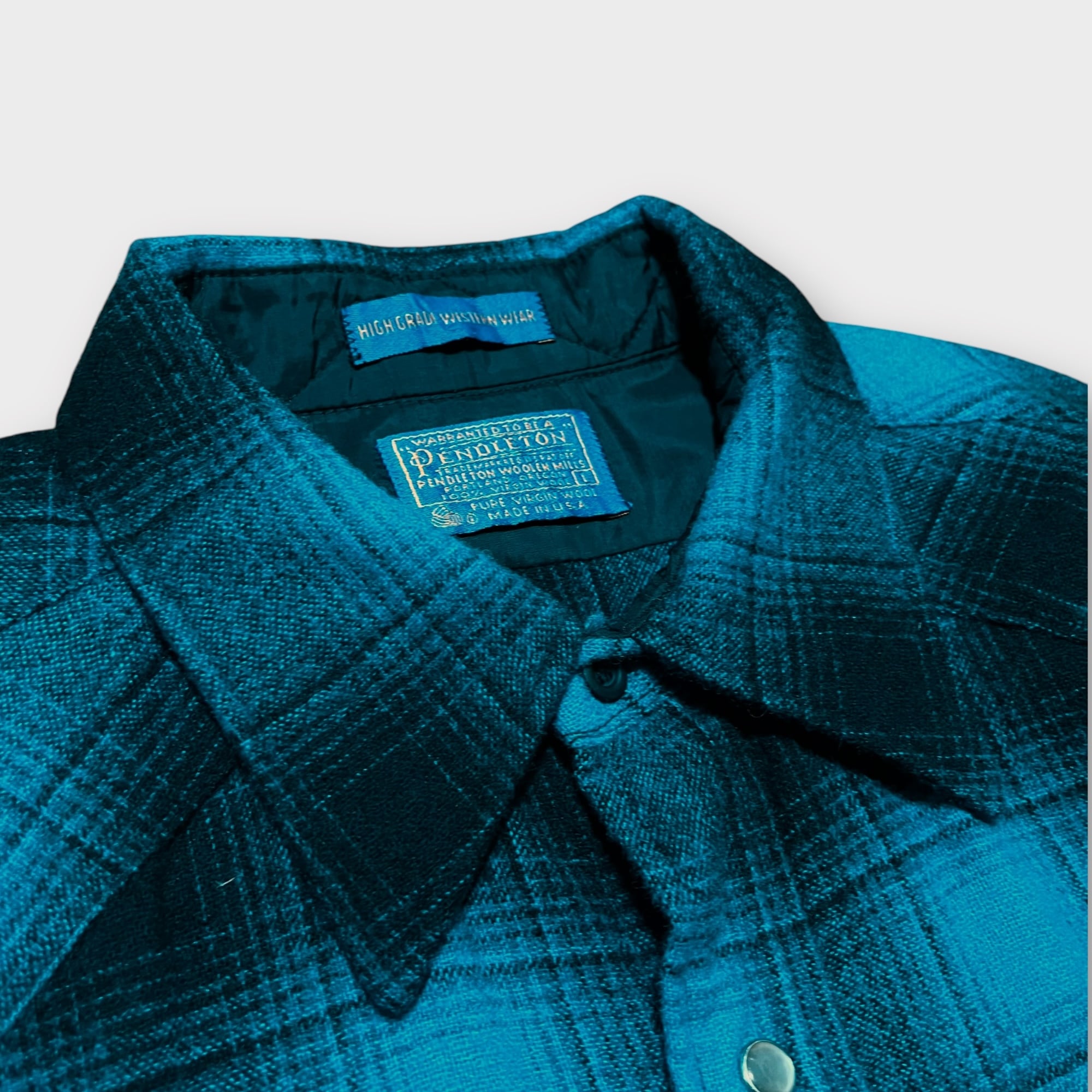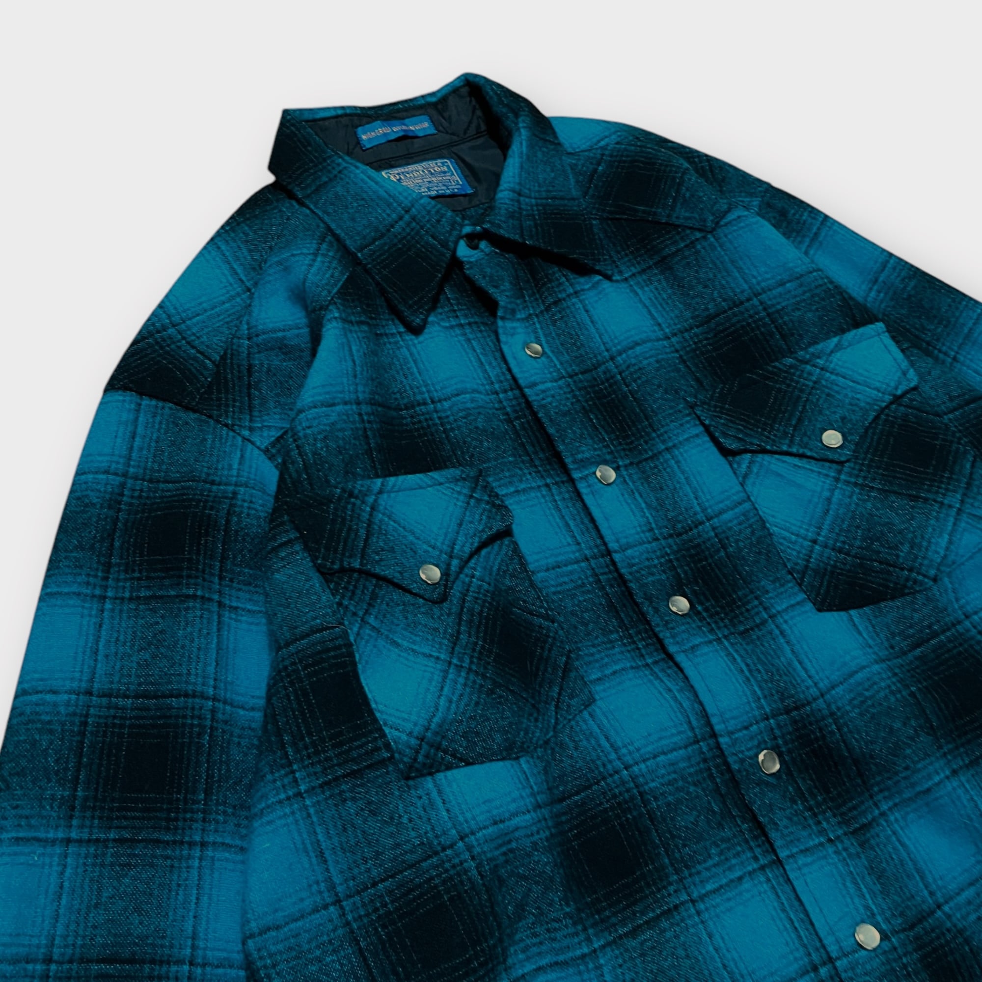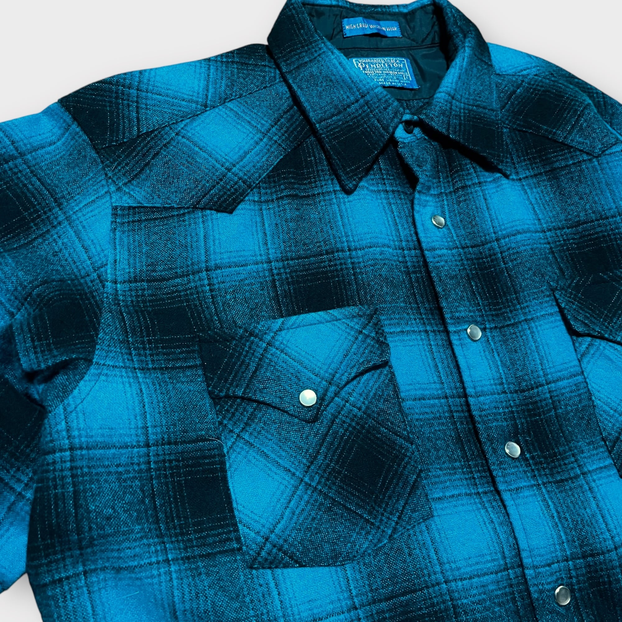 【PENDLETON】1970's シャドーチェックウールウエスタンシャツ MADE IN USA
