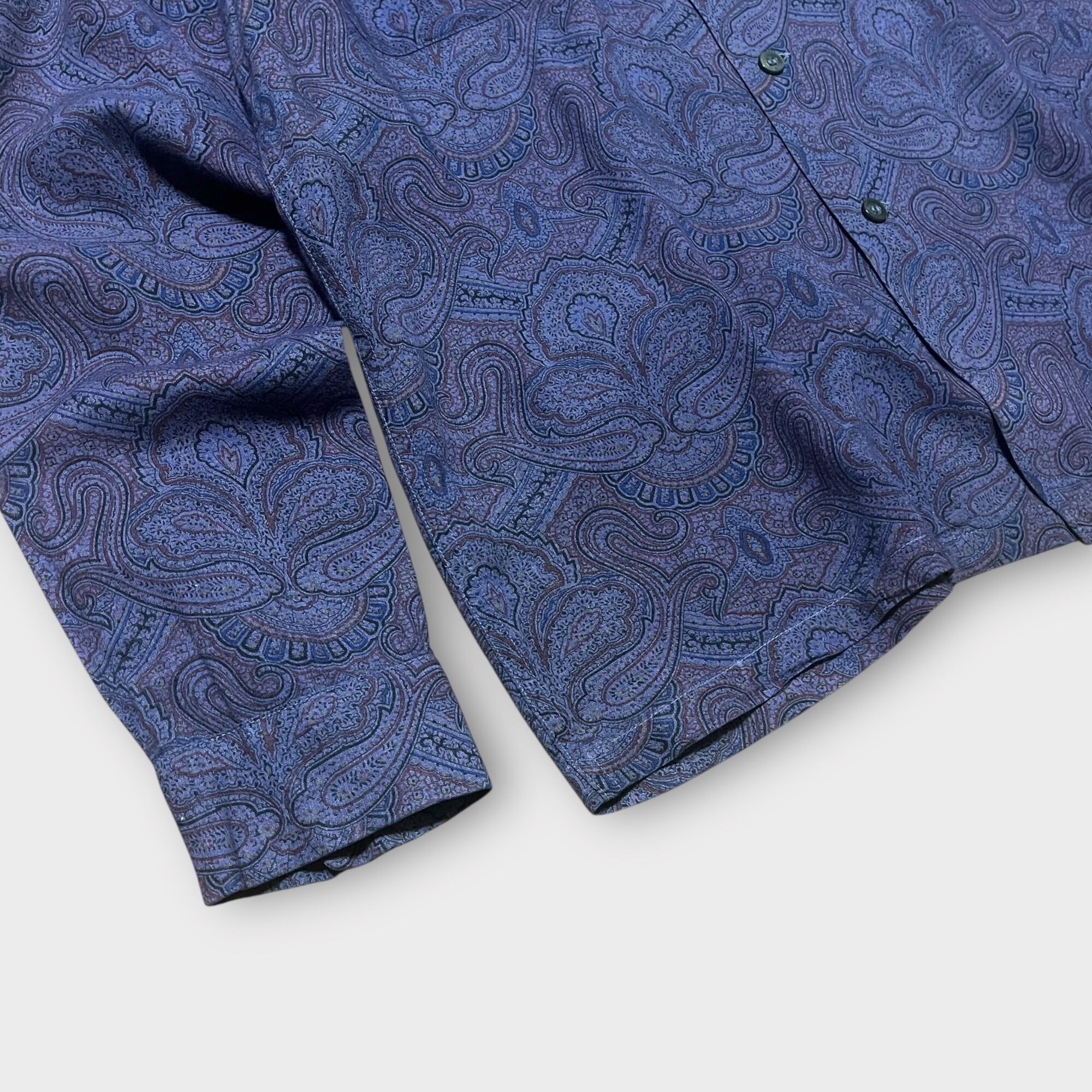 レーヨンのオープンカラーにペイズリー柄そして深みのあるパープルカラーとヴィンテージシャツは好きで見ては居ますが見た事ないようなアイテムです。
