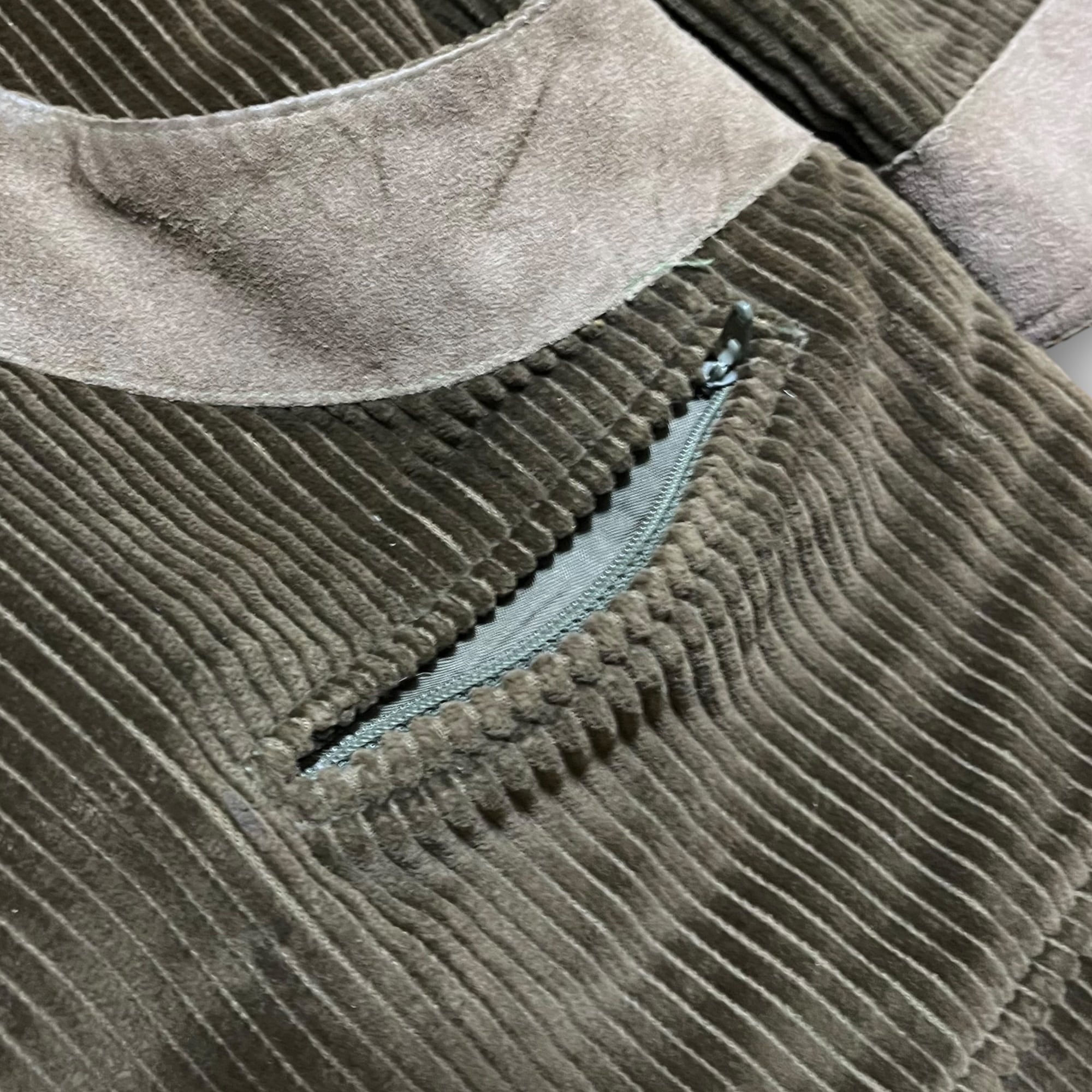 生地にはダークオリーブの太畝のコーデュロイを使い