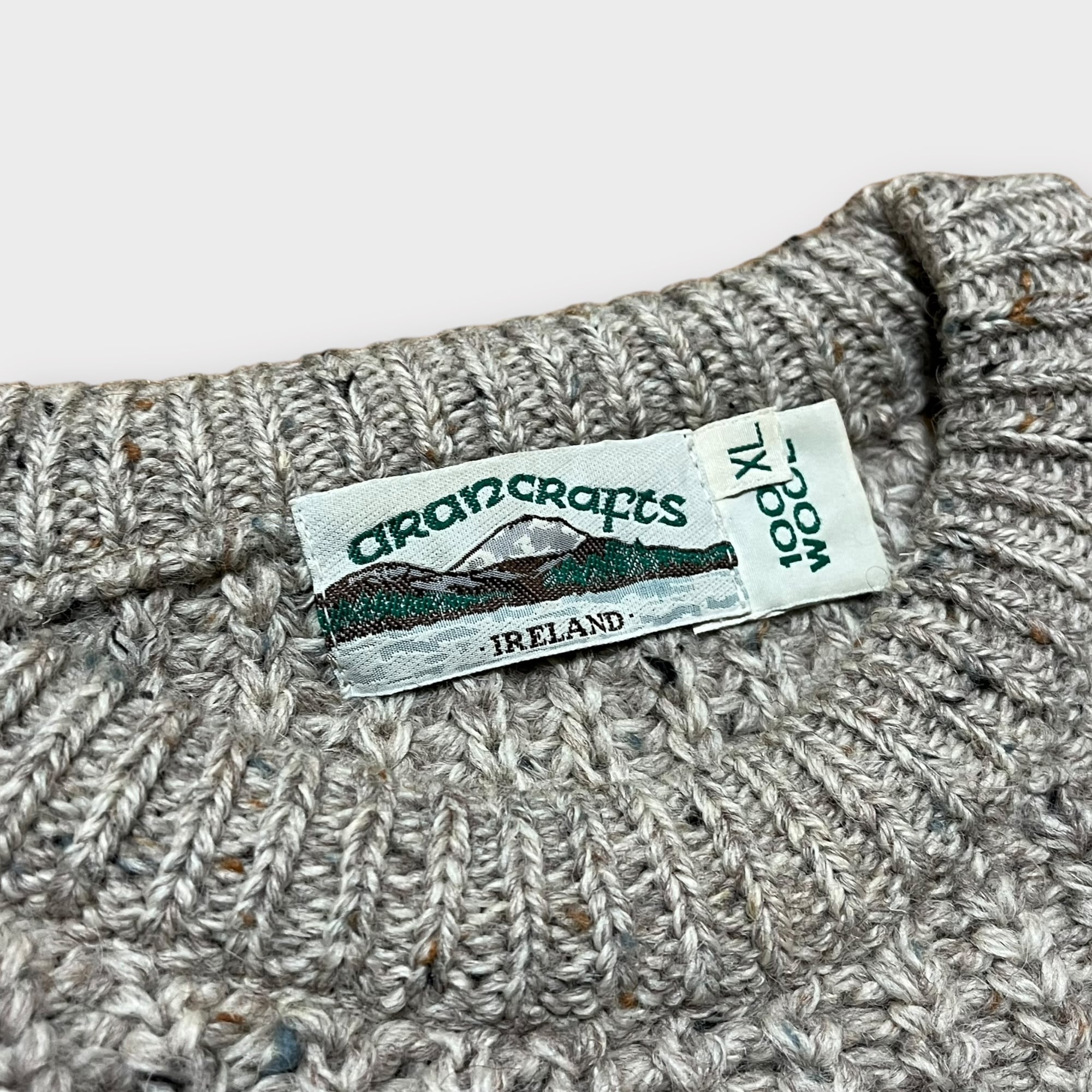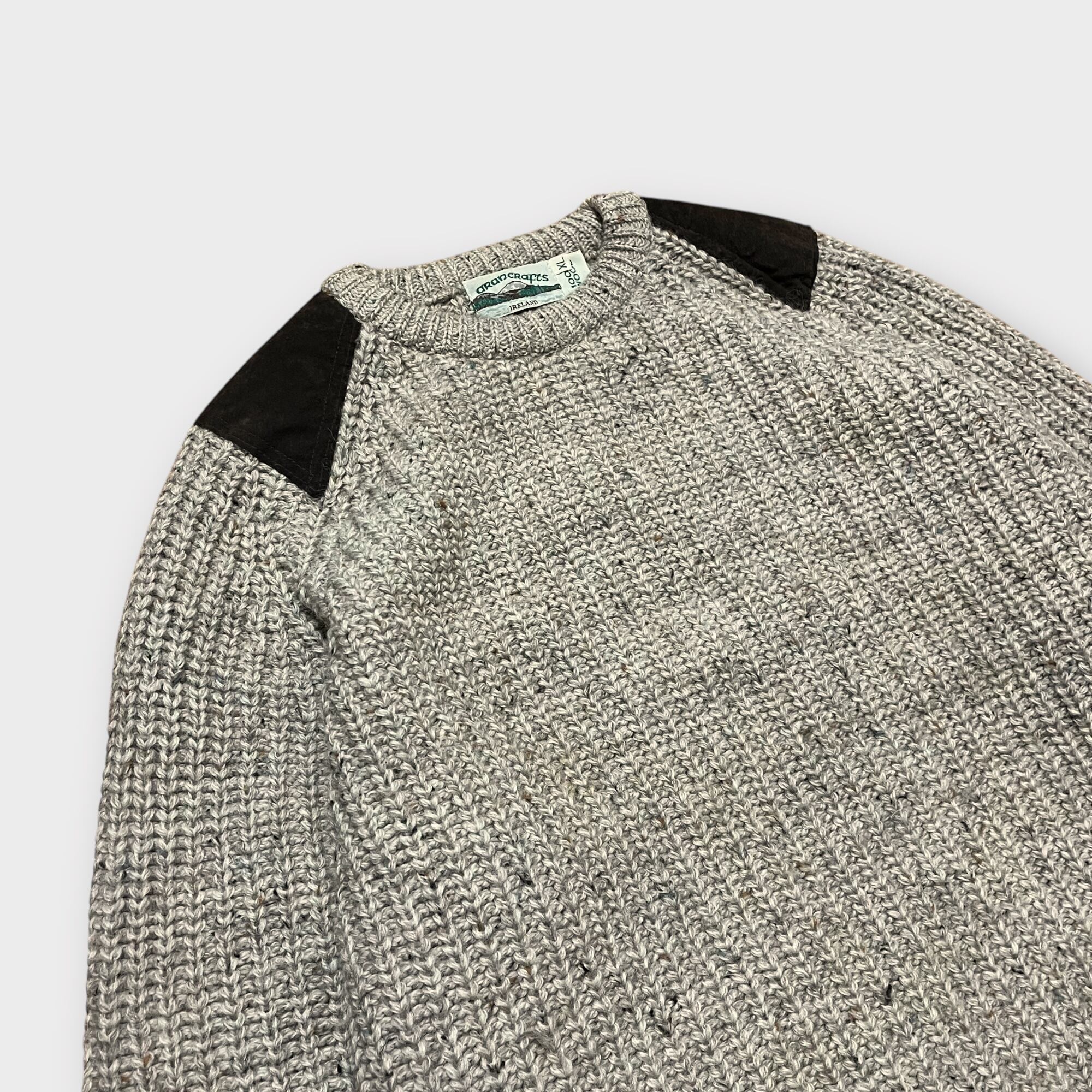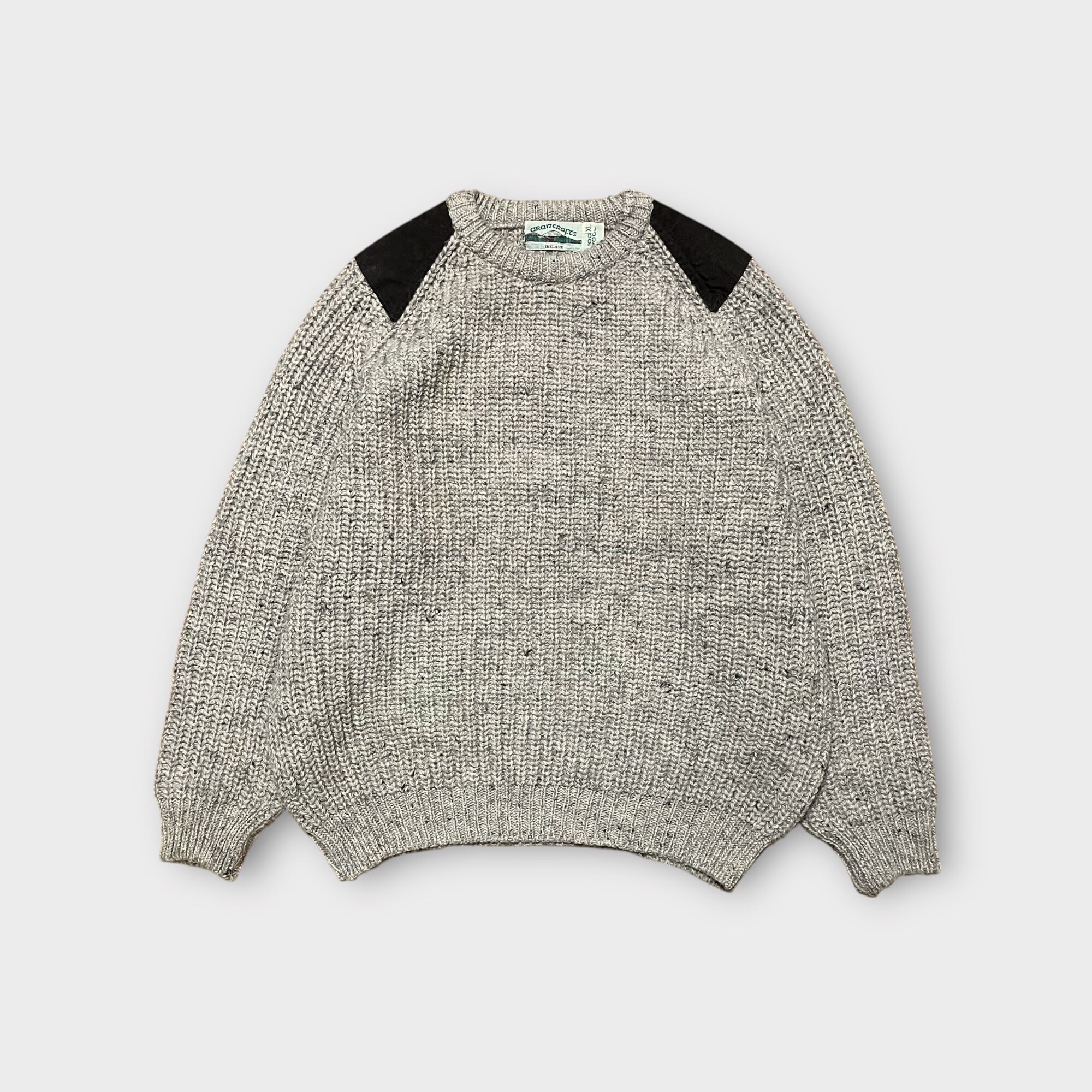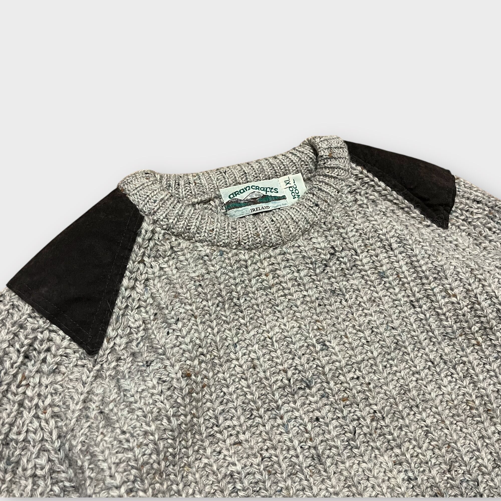 【Used】レザーパッチネップアランニットセーター MADE IN IRELAND