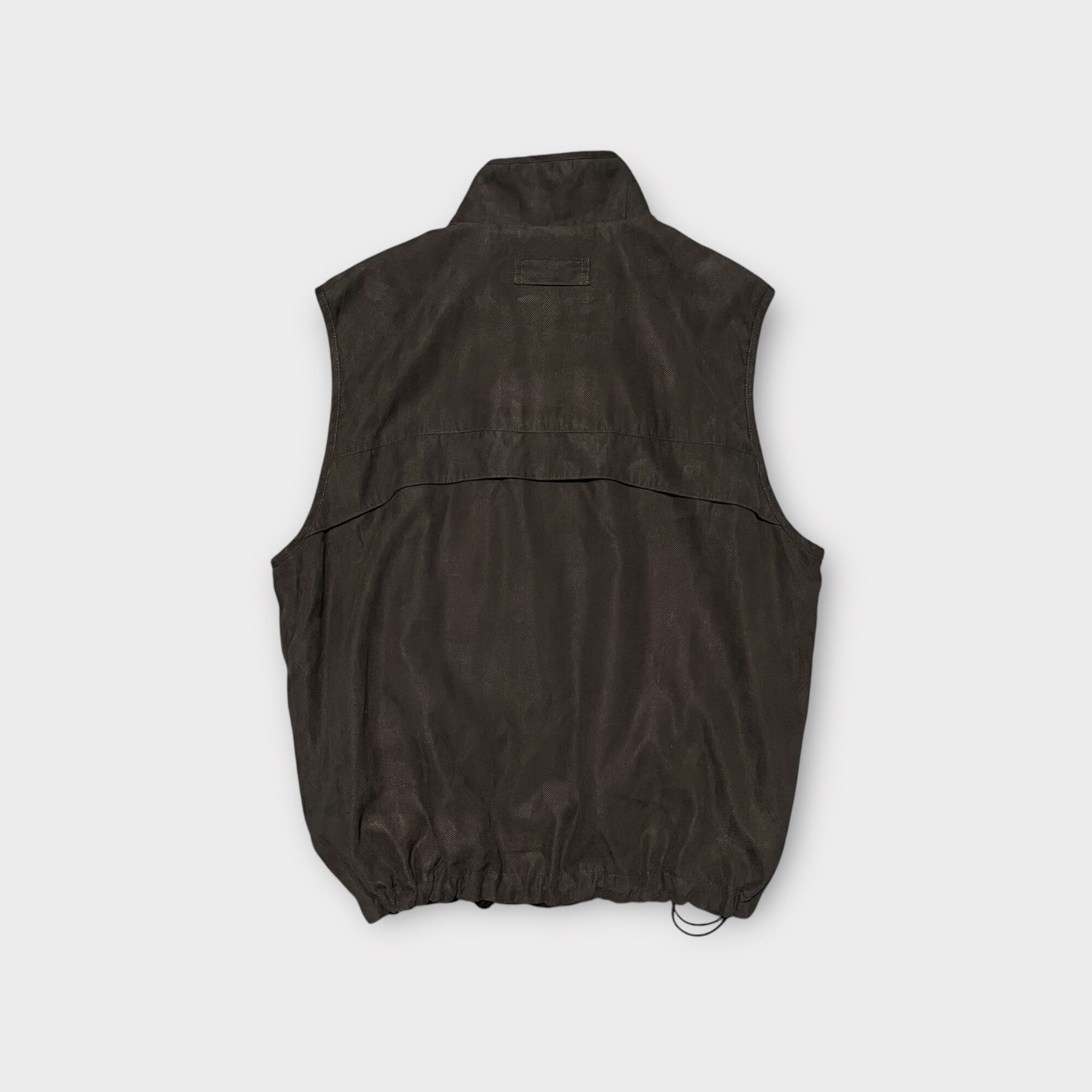 表はブラウンのヘリンボーン裏はブラックのフリースを使用したベスト