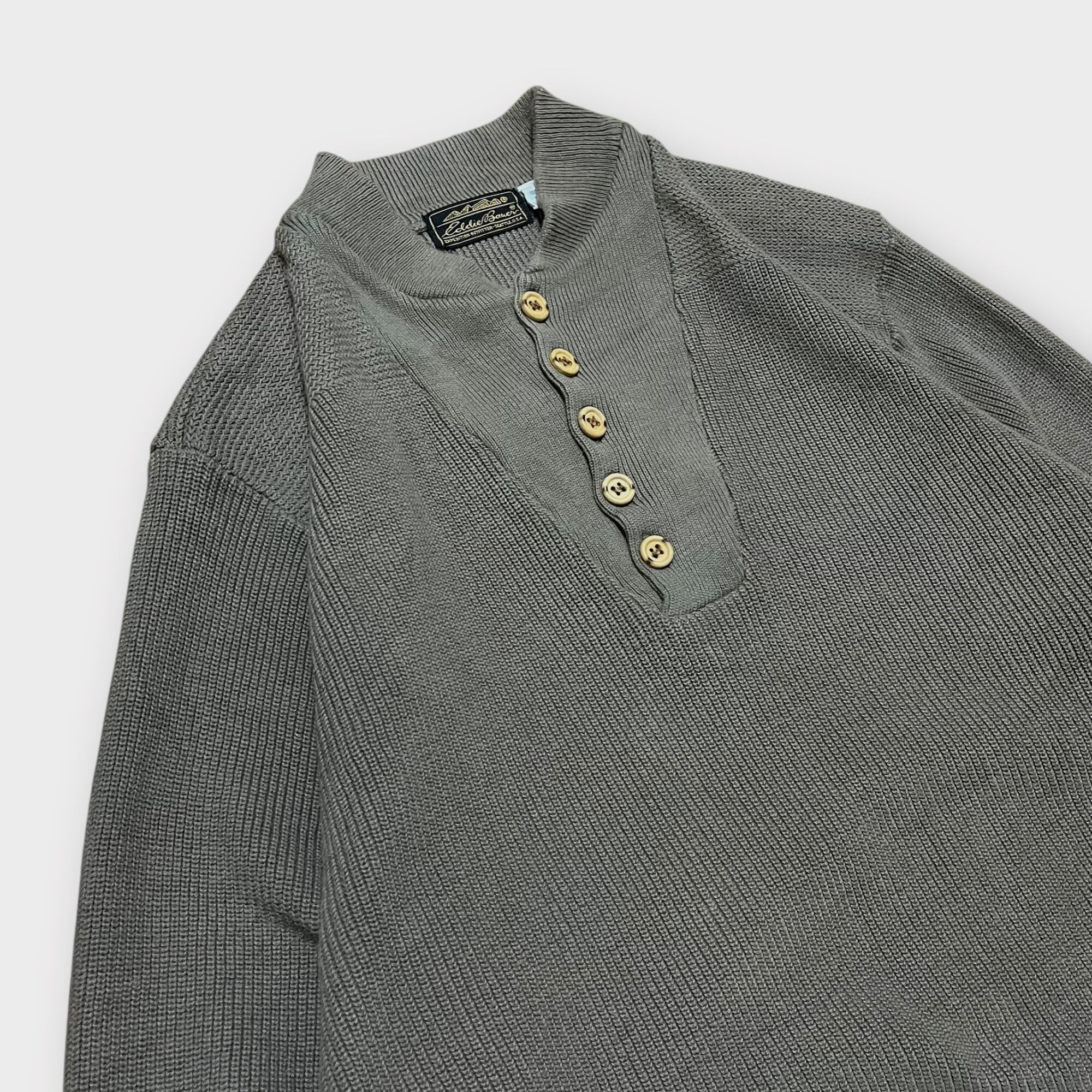 【Eddie Bauer】1980's ヘンリーネックコットンニットセーター