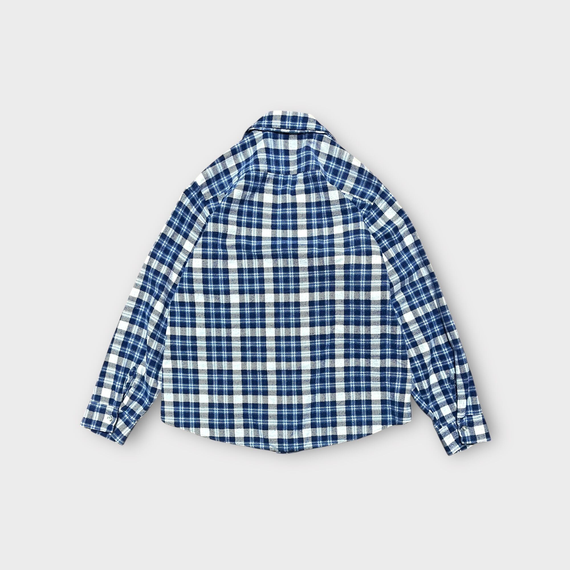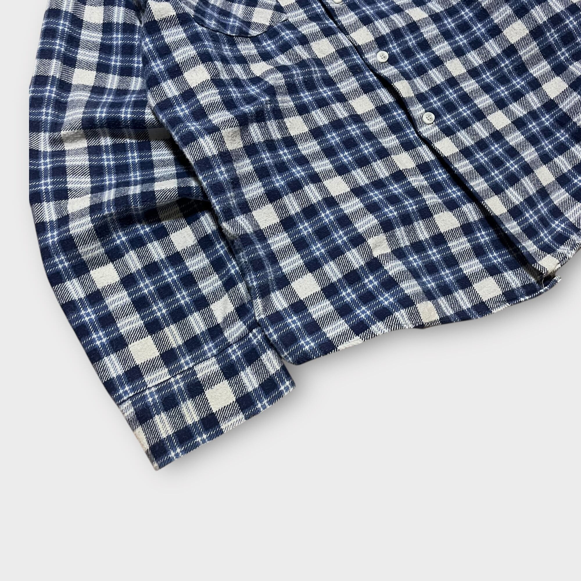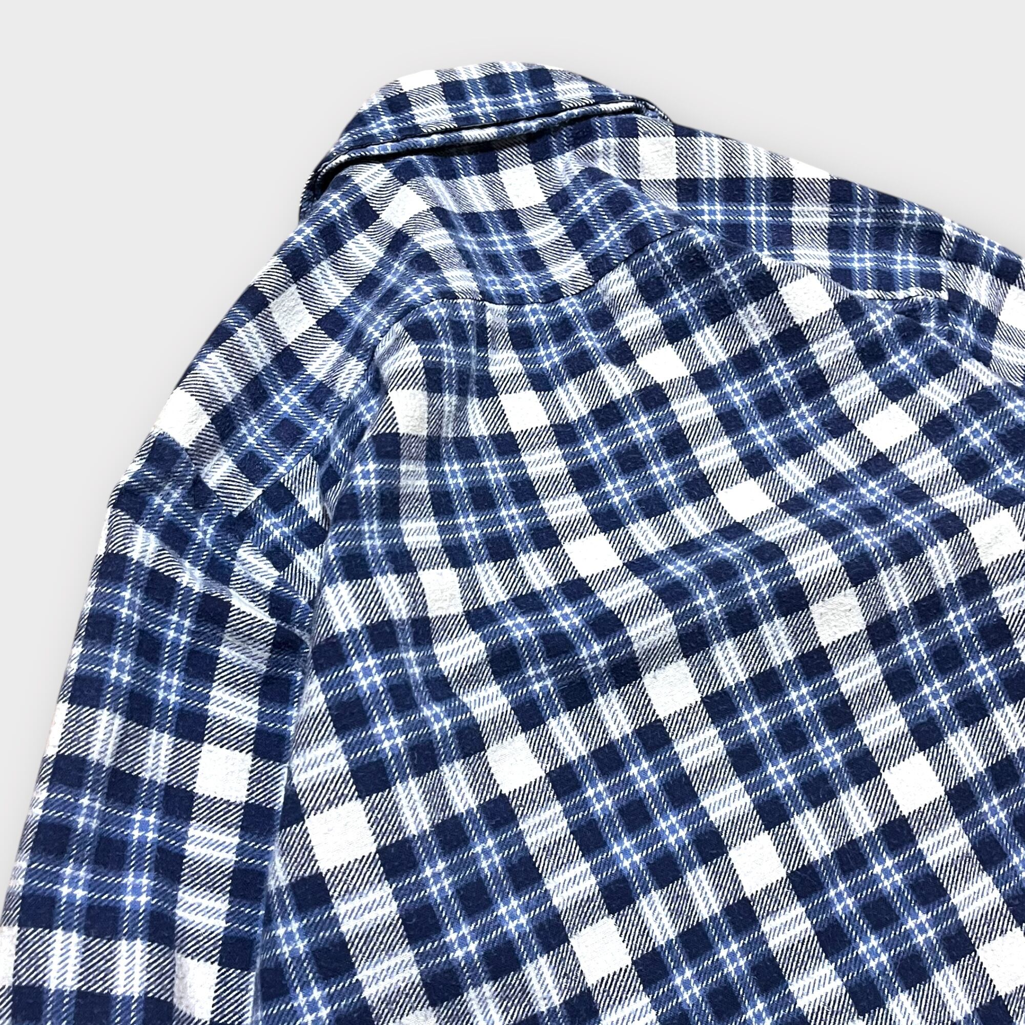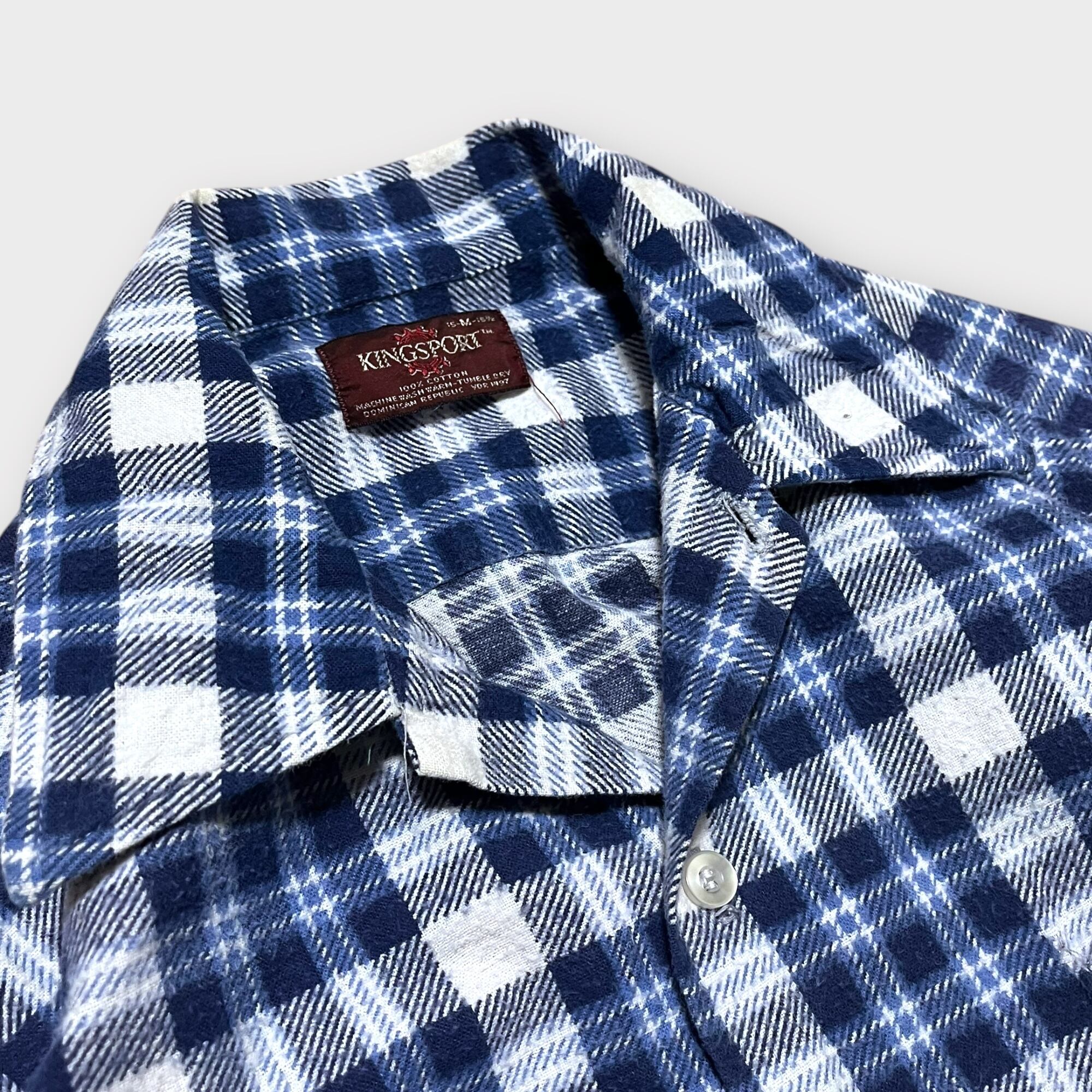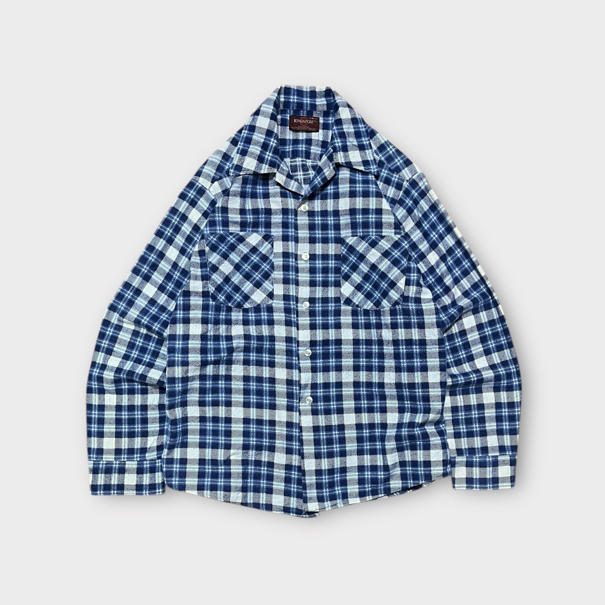 ホワイトベースにブルーのチェック柄のオープンカラー