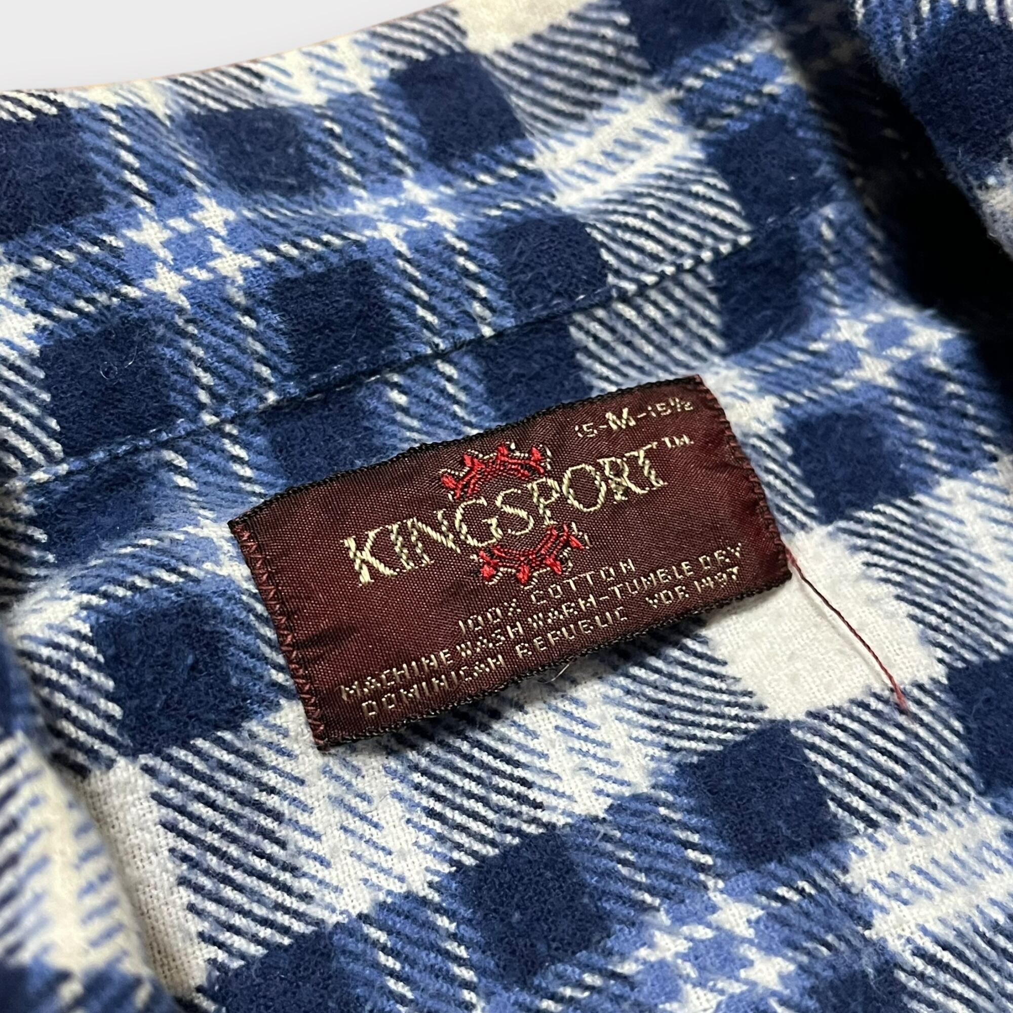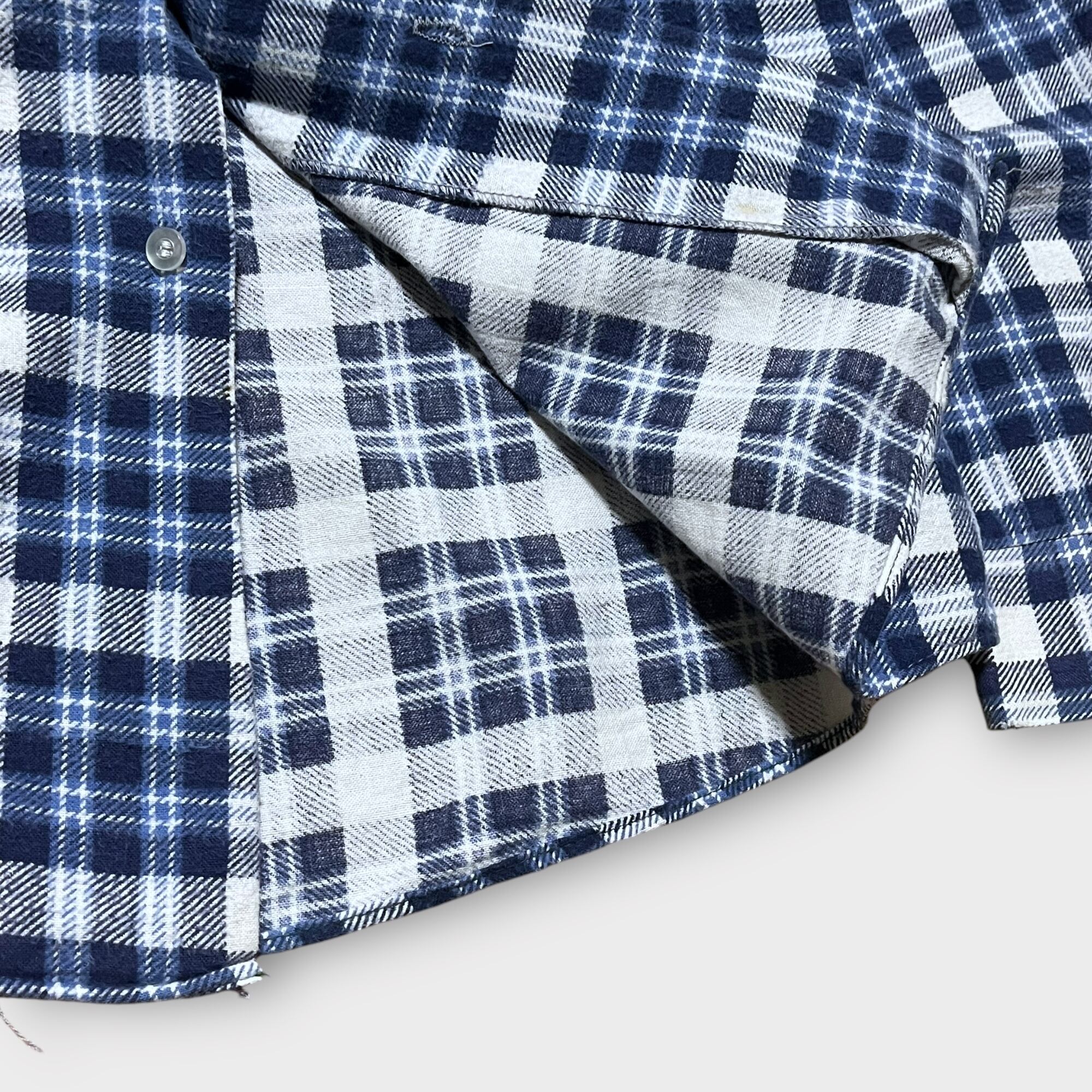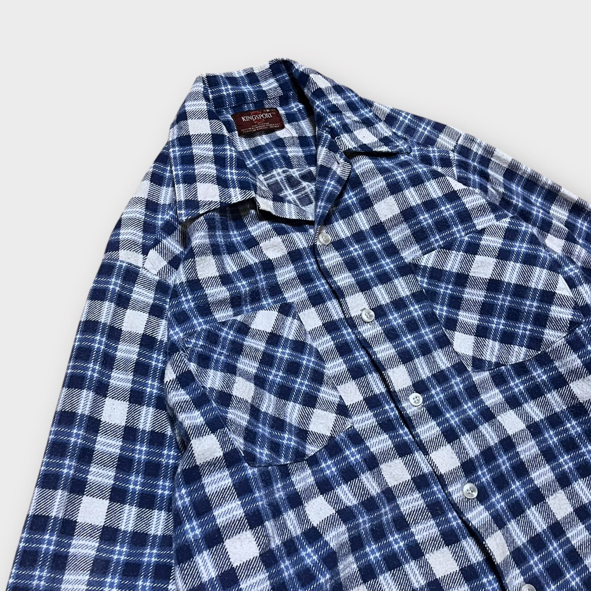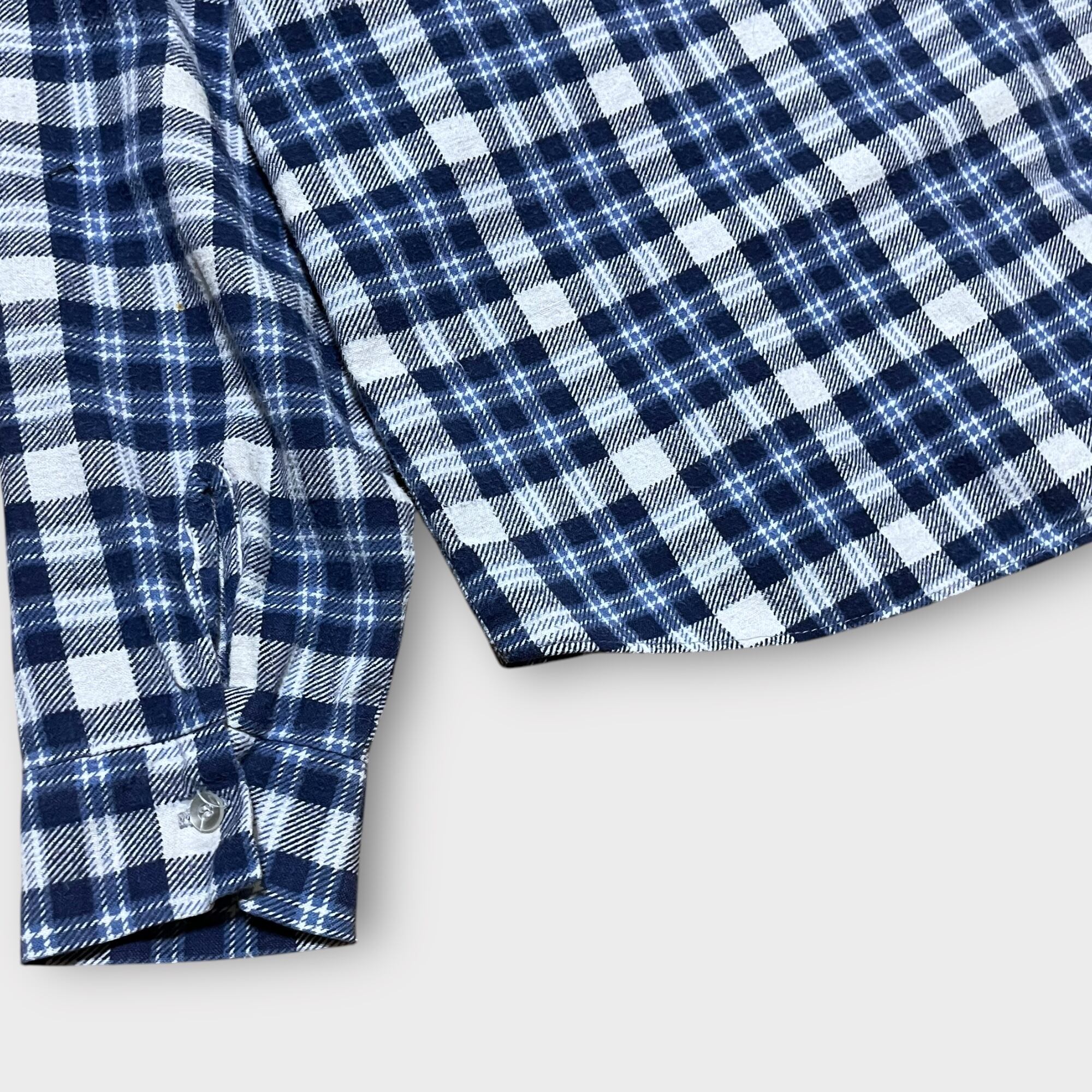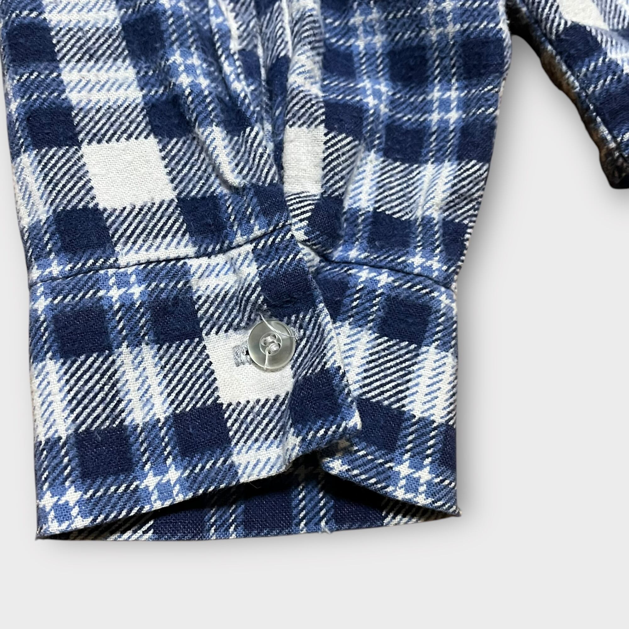 ホワイトベースにブルーのチェック柄のオープンカラー
