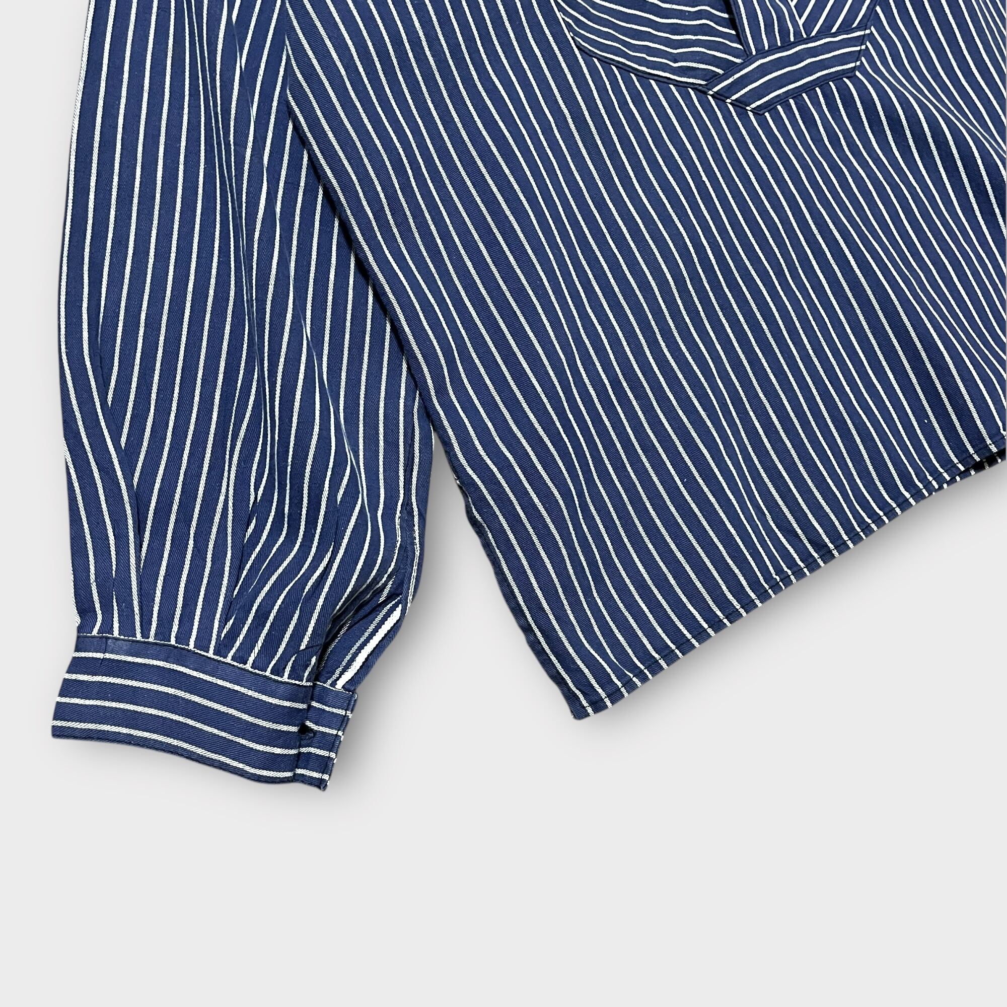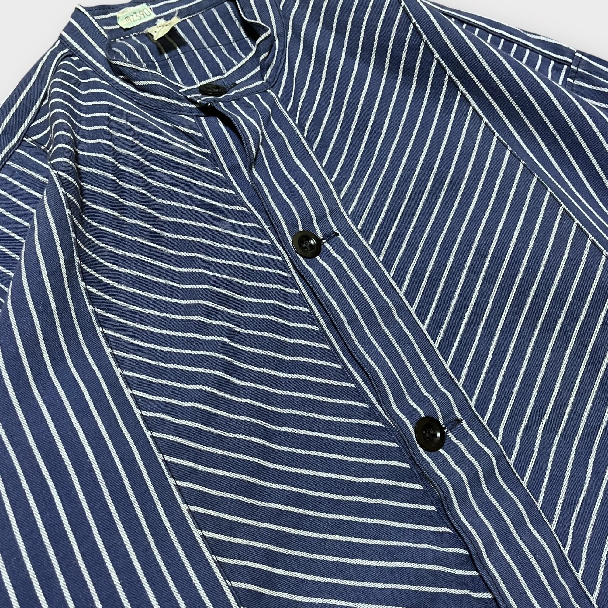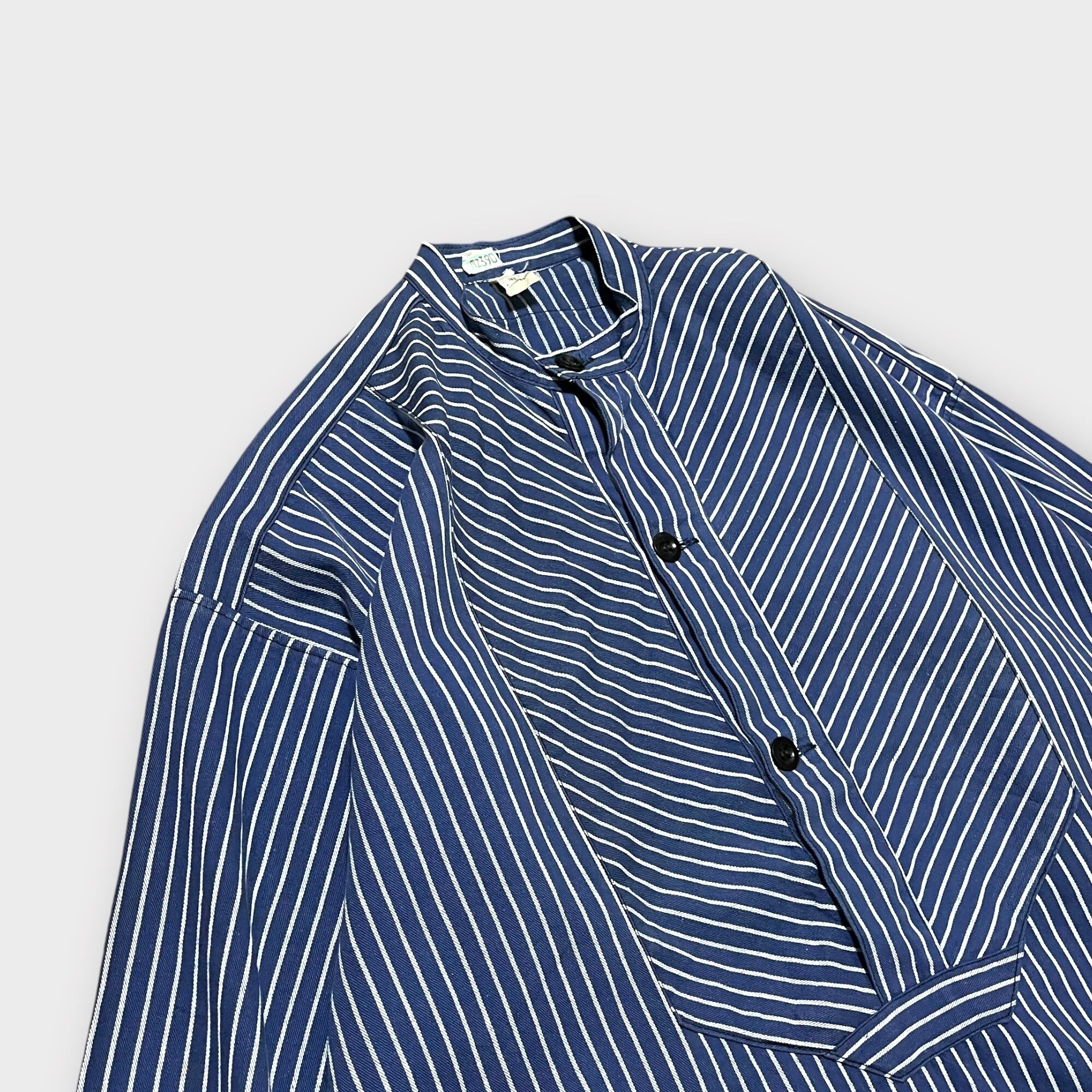 ホワイトにライトネイビーのストライプのシンプルなスタイルが魅力のフィッシャーマンシャツです!