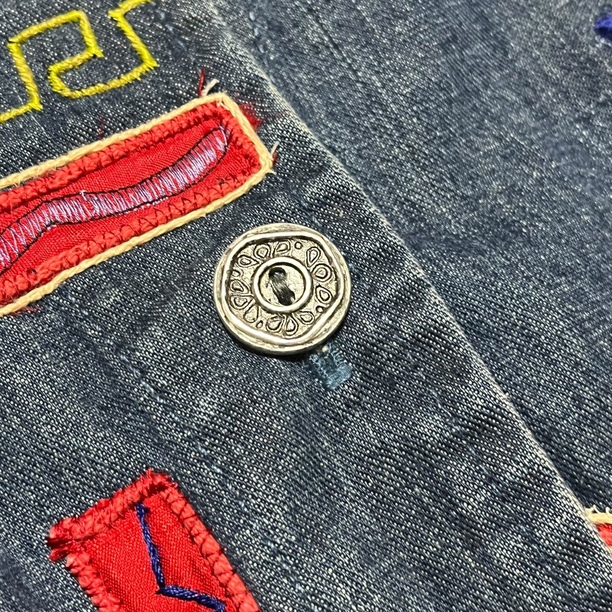 薄手のデニムジャケットに民族的な刺繍が施された1枚