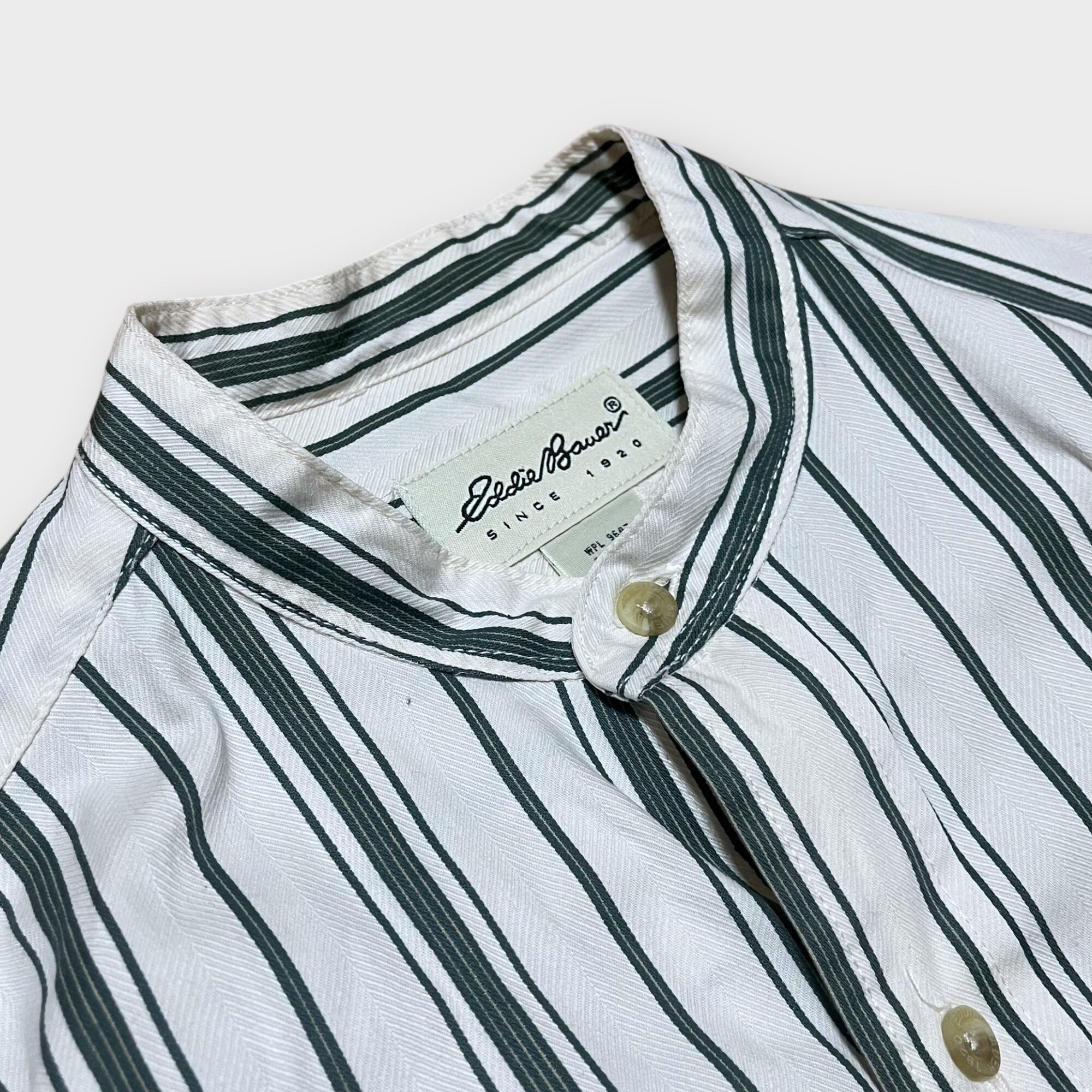【Eddie Bauer】1990's〜 ヘリンボーンバンドカラーストライプシャツ