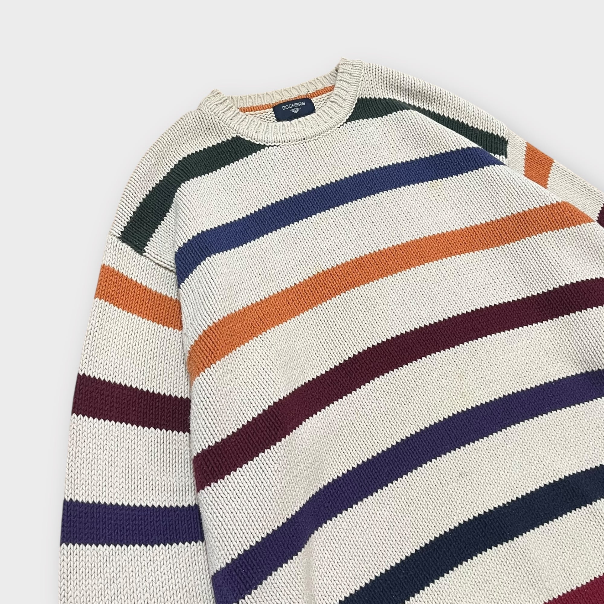 【DOCKERS】1990's~ ローゲージマルチボーダーコットンニットセーター